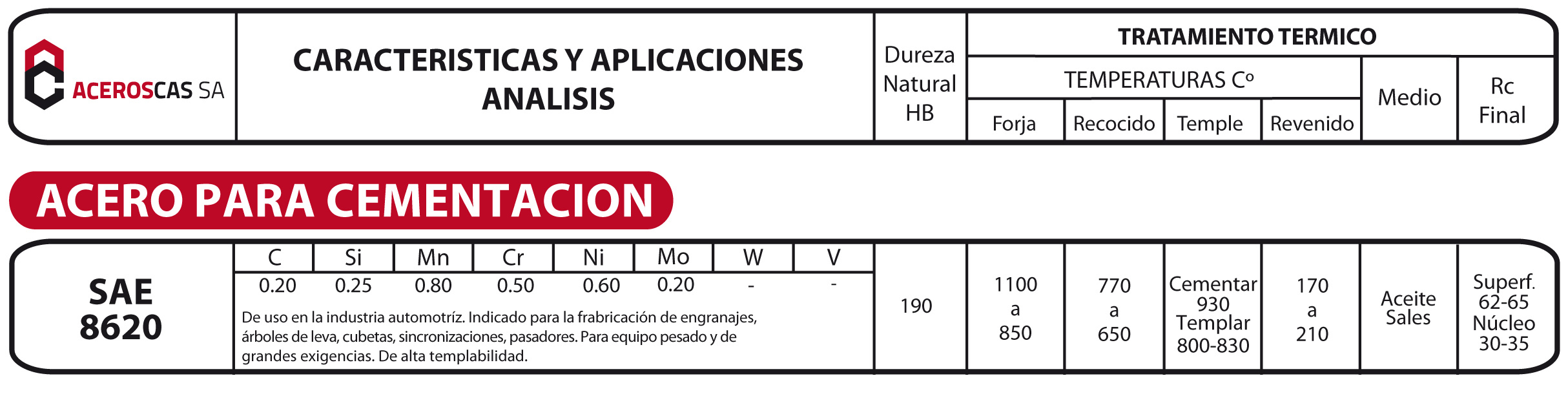 SAE 8620 |  | Forjado | 165 a 690 mm. |