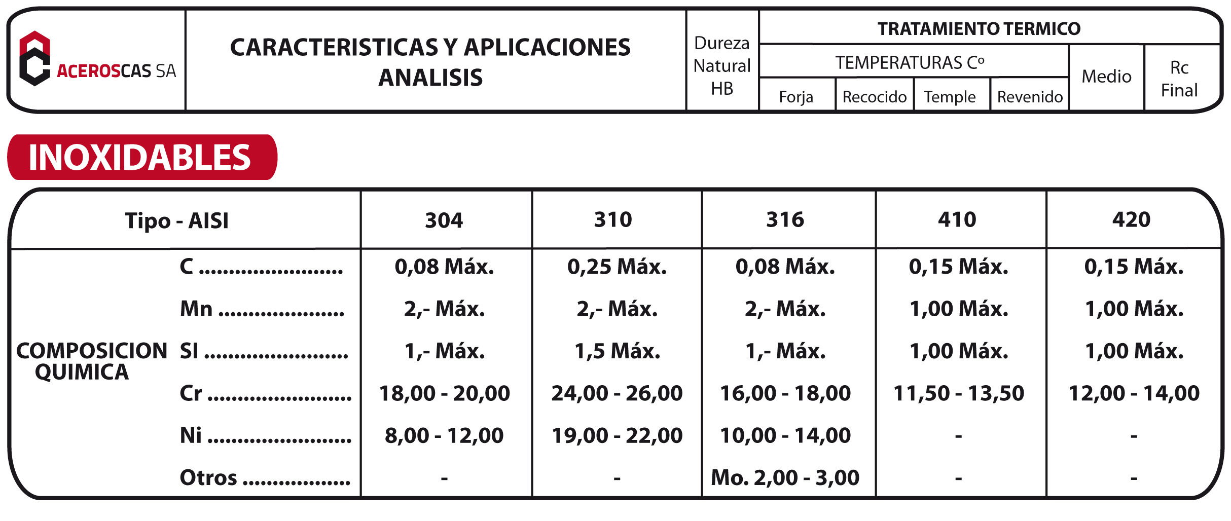 AISI 410/416/420 | , | Laminado/Forjado | ----- |